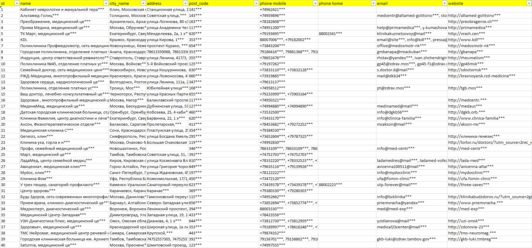 База компаний невролог, вся РФ в формате Excel с эл. почтами, телефонами, сайтами, ссылками на соц сети, координатами и другой информацией. Скачайте демо версию, чтобы ознакомиться с данными.