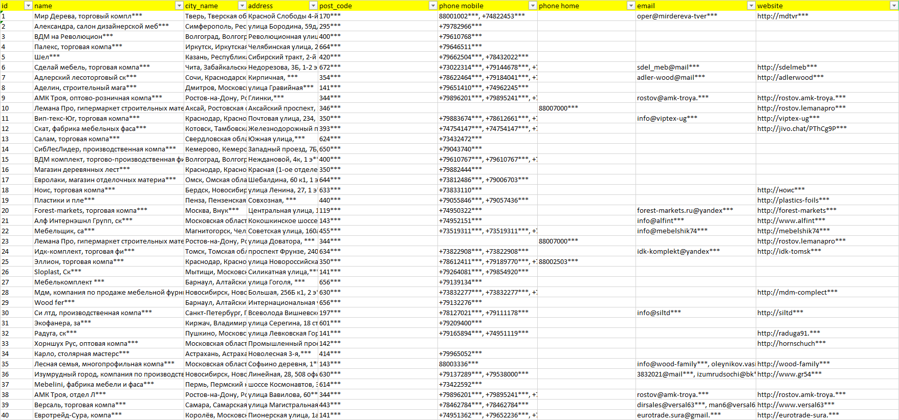 Мы автоматически собираем такие данные с различных открытых источников, обрабатываем, структурирует и упорядочиваем их, предоставляя пользователю возможность скачать результат в формате Excel. По принципу работы наш сервис аналогичен поисковым системам, таким как Google или Яндекс, но с возможностью экспорта найденной информации в удобном табличном виде.