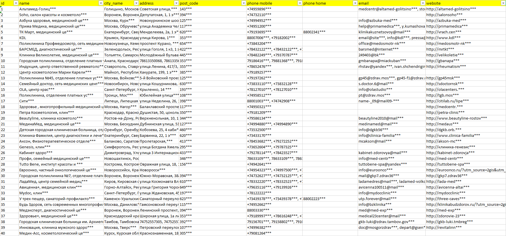 Мы автоматически собираем такие данные с различных открытых источников, обрабатываем, структурирует и упорядочиваем их, предоставляя пользователю возможность скачать результат в формате Excel. По принципу работы наш сервис аналогичен поисковым системам, таким как Google или Яндекс, но с возможностью экспорта найденной информации в удобном табличном виде.