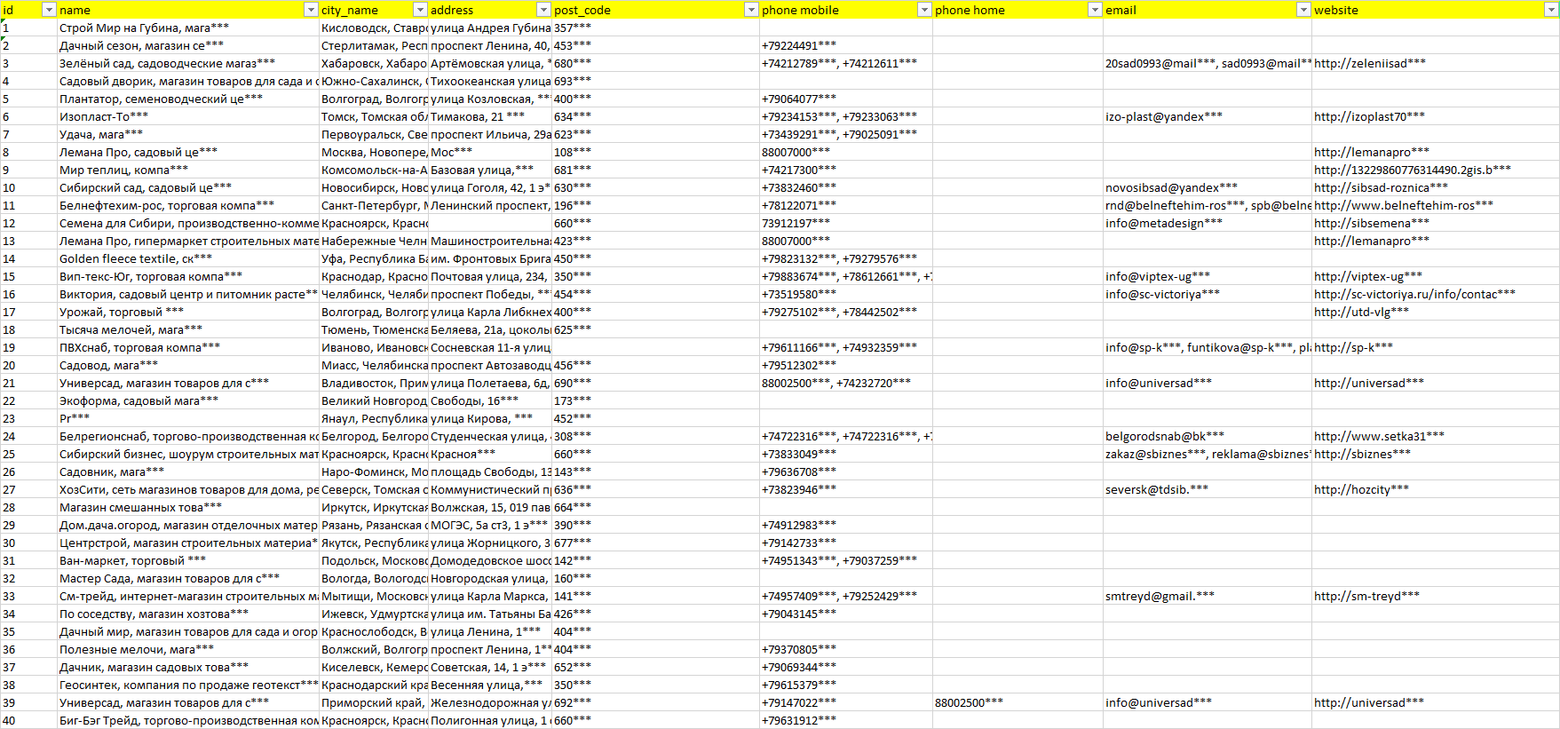 Мы автоматически собираем такие данные с различных открытых источников, обрабатываем, структурирует и упорядочиваем их, предоставляя пользователю возможность скачать результат в формате Excel. По принципу работы наш сервис аналогичен поисковым системам, таким как Google или Яндекс, но с возможностью экспорта найденной информации в удобном табличном виде.