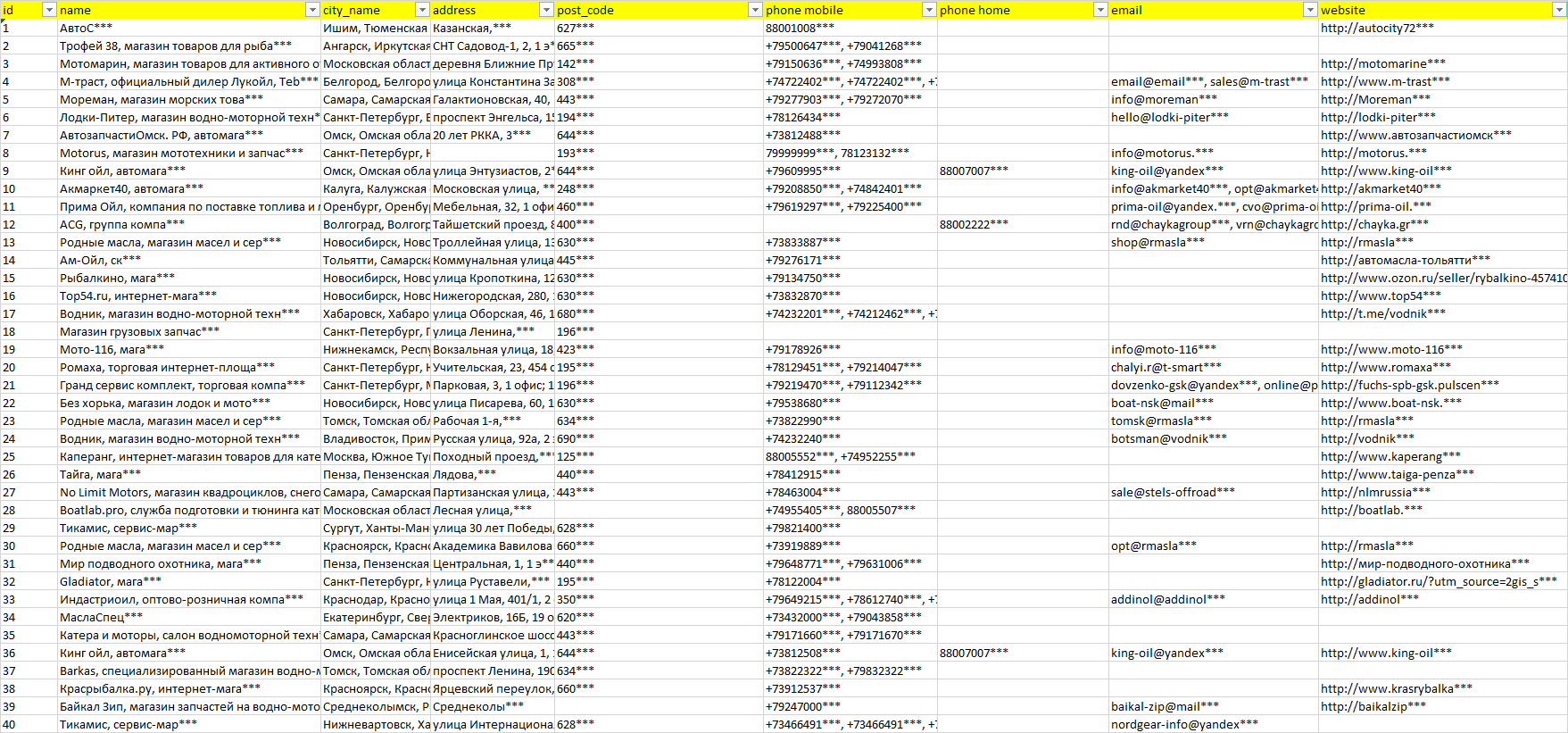 Мы автоматически собираем такие данные с различных открытых источников, обрабатываем, структурирует и упорядочиваем их, предоставляя пользователю возможность скачать результат в формате Excel. По принципу работы наш сервис аналогичен поисковым системам, таким как Google или Яндекс, но с возможностью экспорта найденной информации в удобном табличном виде.
