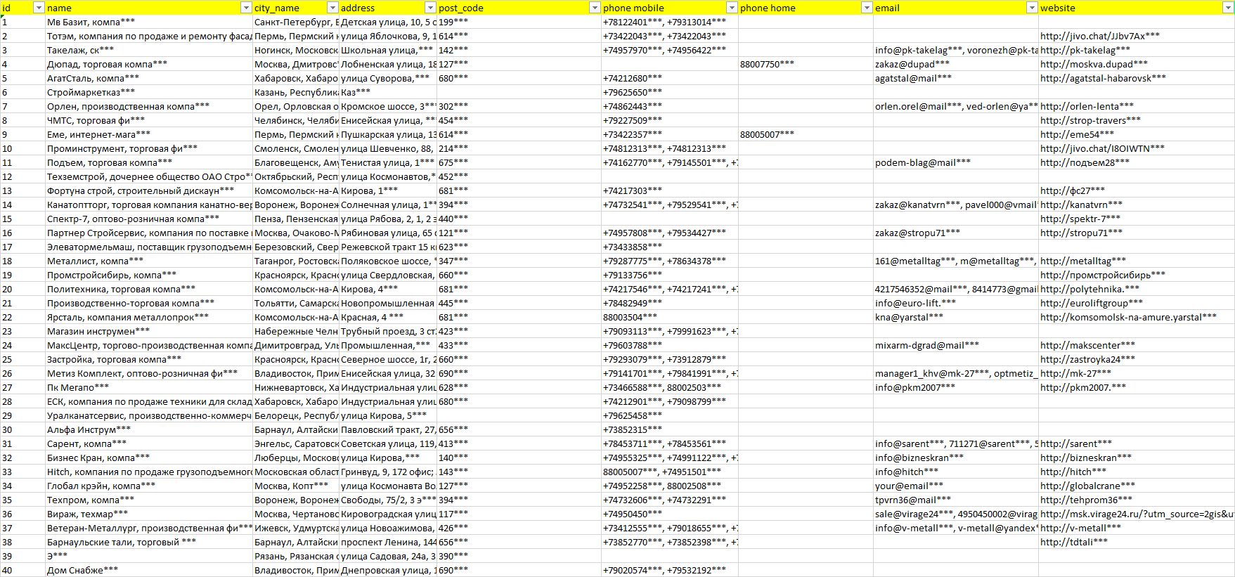 Мы автоматически собираем такие данные с различных открытых источников, обрабатываем, структурирует и упорядочиваем их, предоставляя пользователю возможность скачать результат в формате Excel. По принципу работы наш сервис аналогичен поисковым системам, таким как Google или Яндекс, но с возможностью экспорта найденной информации в удобном табличном виде.