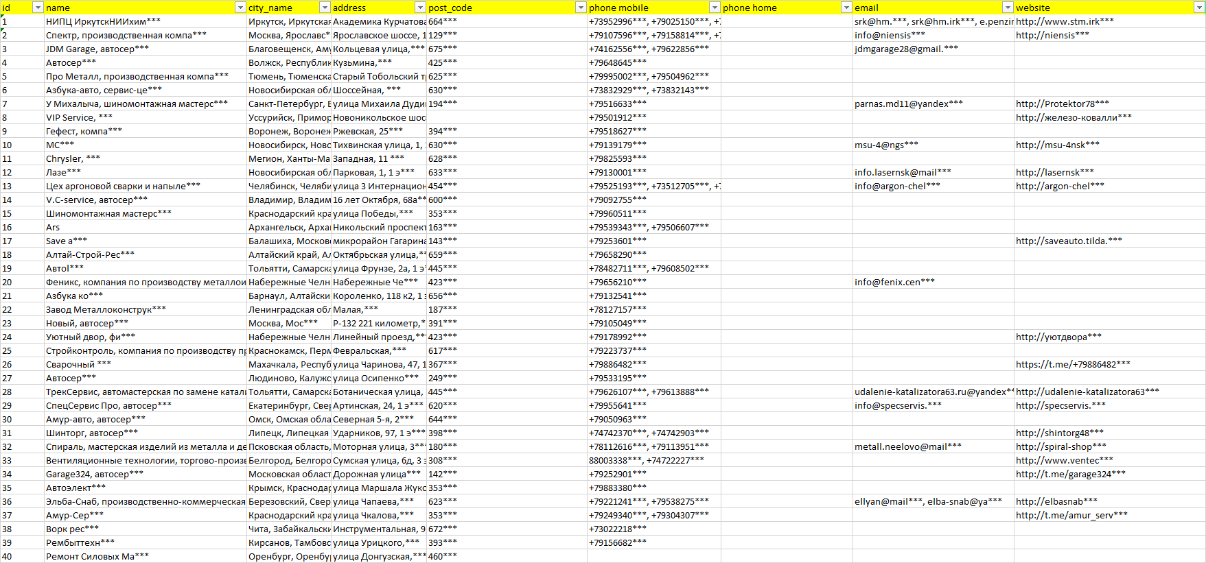 Мы автоматически собираем такие данные с различных открытых источников, обрабатываем, структурирует и упорядочиваем их, предоставляя пользователю возможность скачать результат в формате Excel. По принципу работы наш сервис аналогичен поисковым системам, таким как Google или Яндекс, но с возможностью экспорта найденной информации в удобном табличном виде.