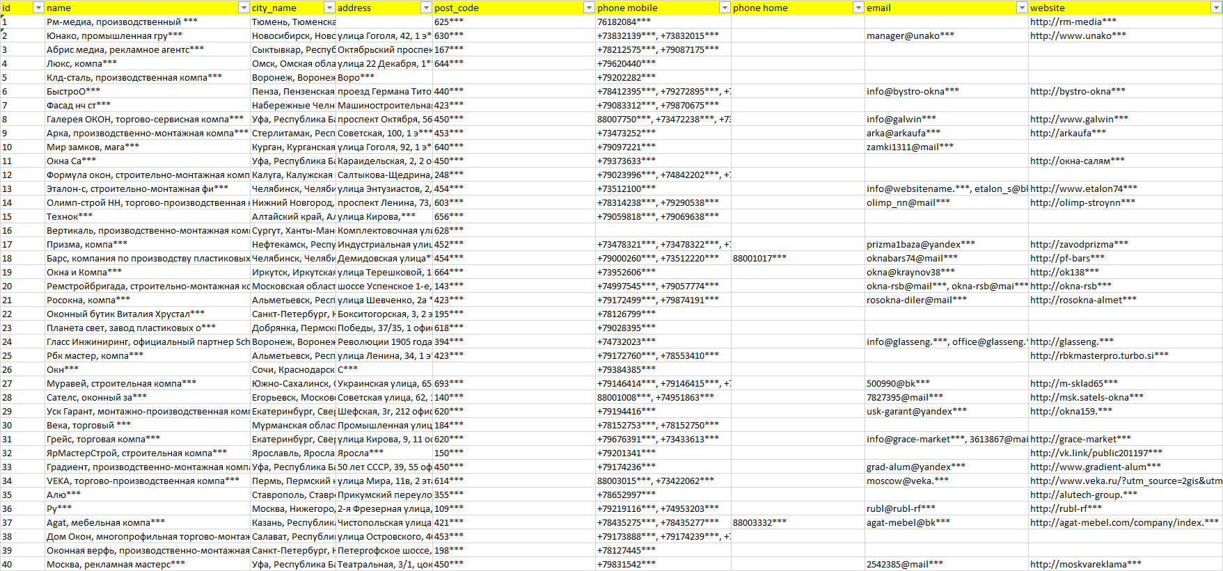 Мы автоматически собираем такие данные с различных открытых источников, обрабатываем, структурирует и упорядочиваем их, предоставляя пользователю возможность скачать результат в формате Excel. По принципу работы наш сервис аналогичен поисковым системам, таким как Google или Яндекс, но с возможностью экспорта найденной информации в удобном табличном виде.