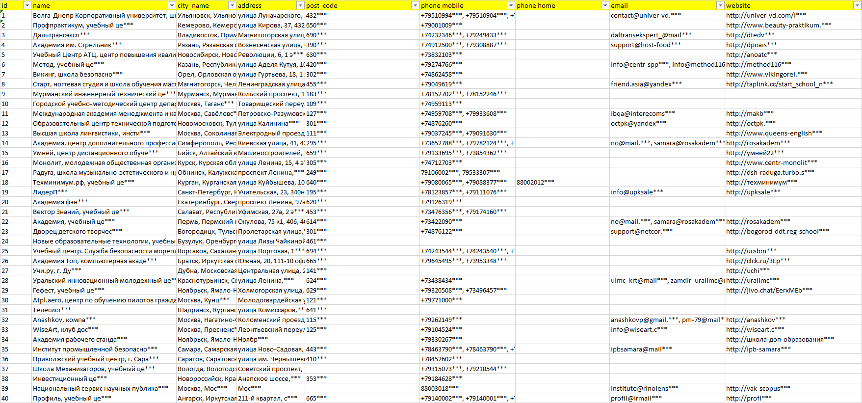 База компаний переподготовка и повышение квалификации, вся РФ в формате Excel с эл. почтами, телефонами, сайтами, ссылками на соц сети, координатами и другой информацией. Скачайте демо версию, чтобы ознакомиться с данными.