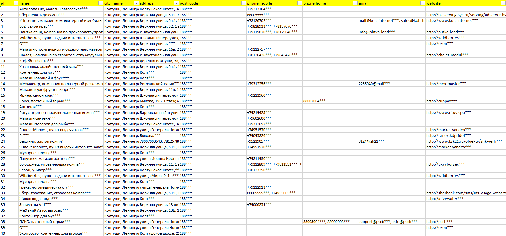 Мы автоматически собираем такие данные с различных открытых источников, обрабатываем, структурирует и упорядочиваем их, предоставляя пользователю возможность скачать результат в формате Excel. По принципу работы наш сервис аналогичен поисковым системам, таким как Google или Яндекс, но с возможностью экспорта найденной информации в удобном табличном виде.