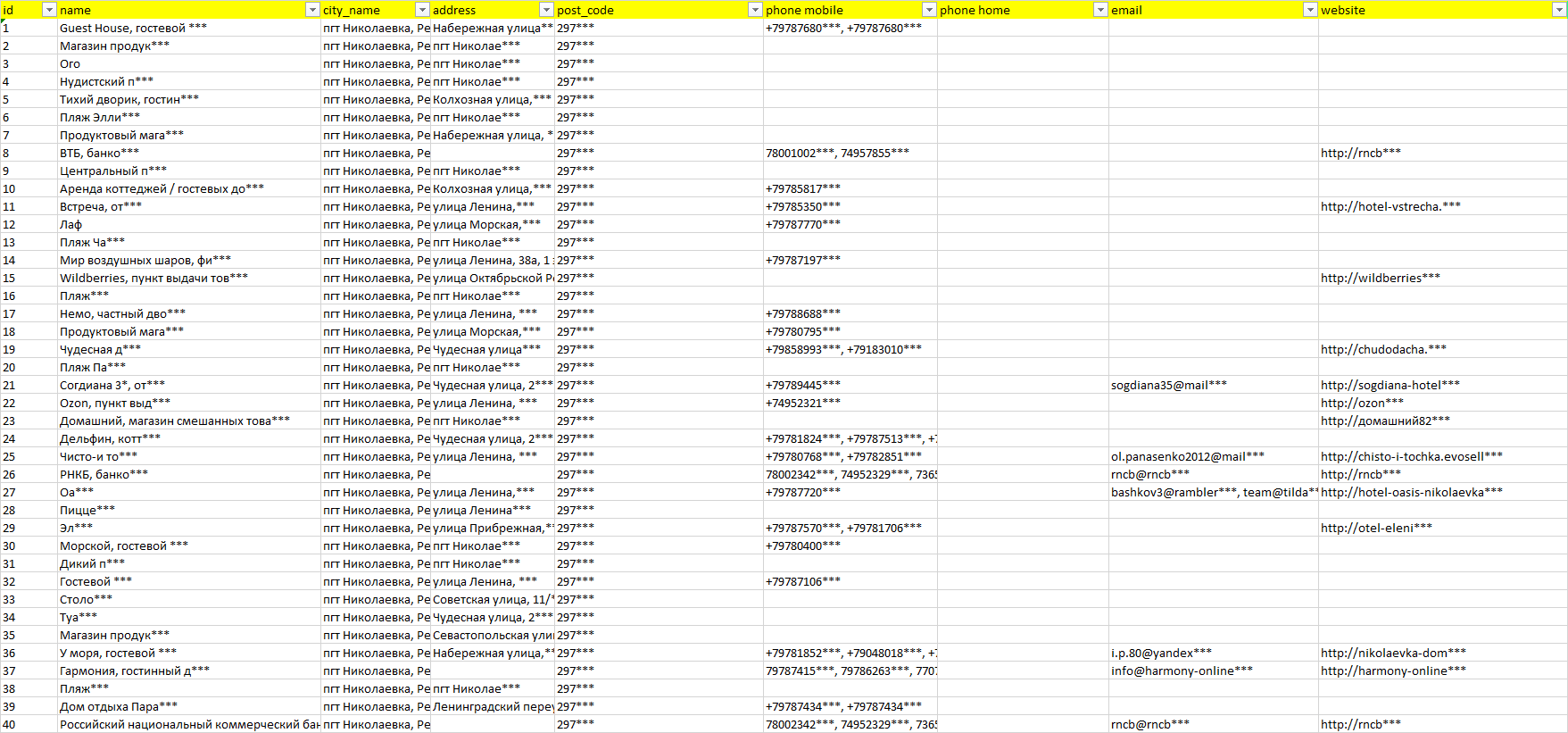 Мы автоматически собираем такие данные с различных открытых источников, обрабатываем, структурирует и упорядочиваем их, предоставляя пользователю возможность скачать результат в формате Excel. По принципу работы наш сервис аналогичен поисковым системам, таким как Google или Яндекс, но с возможностью экспорта найденной информации в удобном табличном виде.