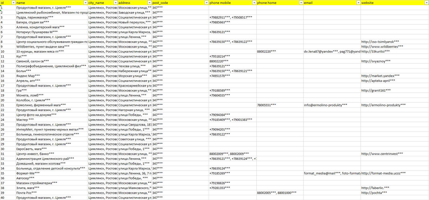 Мы автоматически собираем такие данные с различных открытых источников, обрабатываем, структурирует и упорядочиваем их, предоставляя пользователю возможность скачать результат в формате Excel. По принципу работы наш сервис аналогичен поисковым системам, таким как Google или Яндекс, но с возможностью экспорта найденной информации в удобном табличном виде.