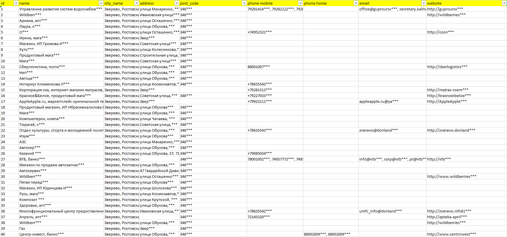 Мы автоматически собираем такие данные с различных открытых источников, обрабатываем, структурирует и упорядочиваем их, предоставляя пользователю возможность скачать результат в формате Excel. По принципу работы наш сервис аналогичен поисковым системам, таким как Google или Яндекс, но с возможностью экспорта найденной информации в удобном табличном виде.