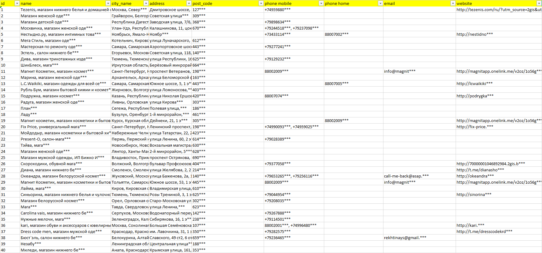 Мы автоматически собираем такие данные с различных открытых источников, обрабатываем, структурирует и упорядочиваем их, предоставляя пользователю возможность скачать результат в формате Excel. По принципу работы наш сервис аналогичен поисковым системам, таким как Google или Яндекс, но с возможностью экспорта найденной информации в удобном табличном виде.