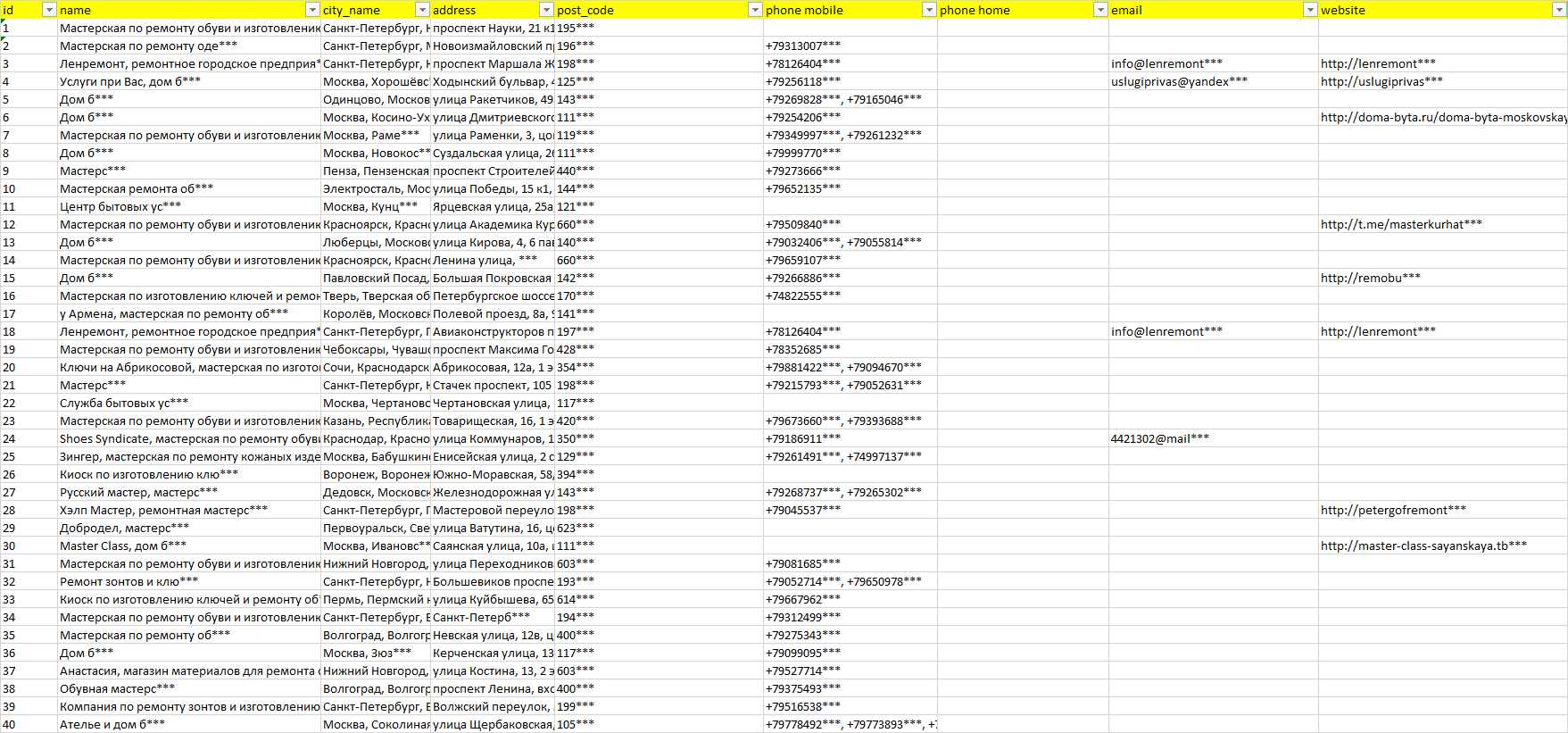 Мы автоматически собираем такие данные с различных открытых источников, обрабатываем, структурирует и упорядочиваем их, предоставляя пользователю возможность скачать результат в формате Excel. По принципу работы наш сервис аналогичен поисковым системам, таким как Google или Яндекс, но с возможностью экспорта найденной информации в удобном табличном виде.