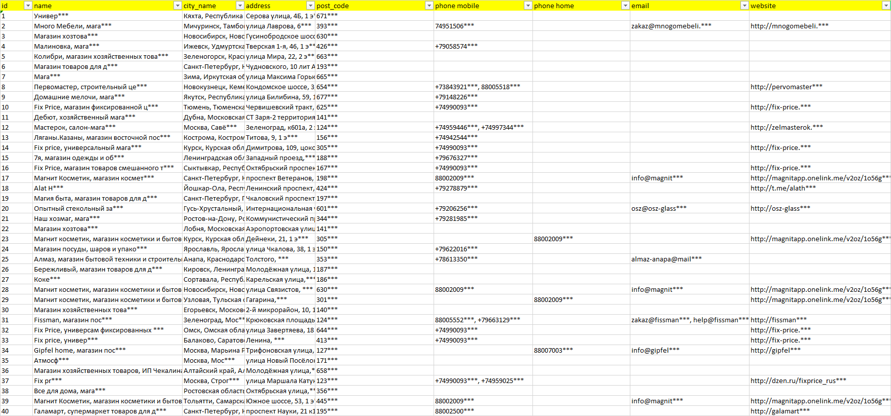 Мы автоматически собираем такие данные с различных открытых источников, обрабатываем, структурирует и упорядочиваем их, предоставляя пользователю возможность скачать результат в формате Excel. По принципу работы наш сервис аналогичен поисковым системам, таким как Google или Яндекс, но с возможностью экспорта найденной информации в удобном табличном виде.