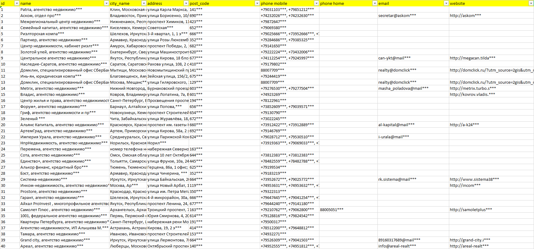 Мы автоматически собираем такие данные с различных открытых источников, обрабатываем, структурирует и упорядочиваем их, предоставляя пользователю возможность скачать результат в формате Excel. По принципу работы наш сервис аналогичен поисковым системам, таким как Google или Яндекс, но с возможностью экспорта найденной информации в удобном табличном виде.