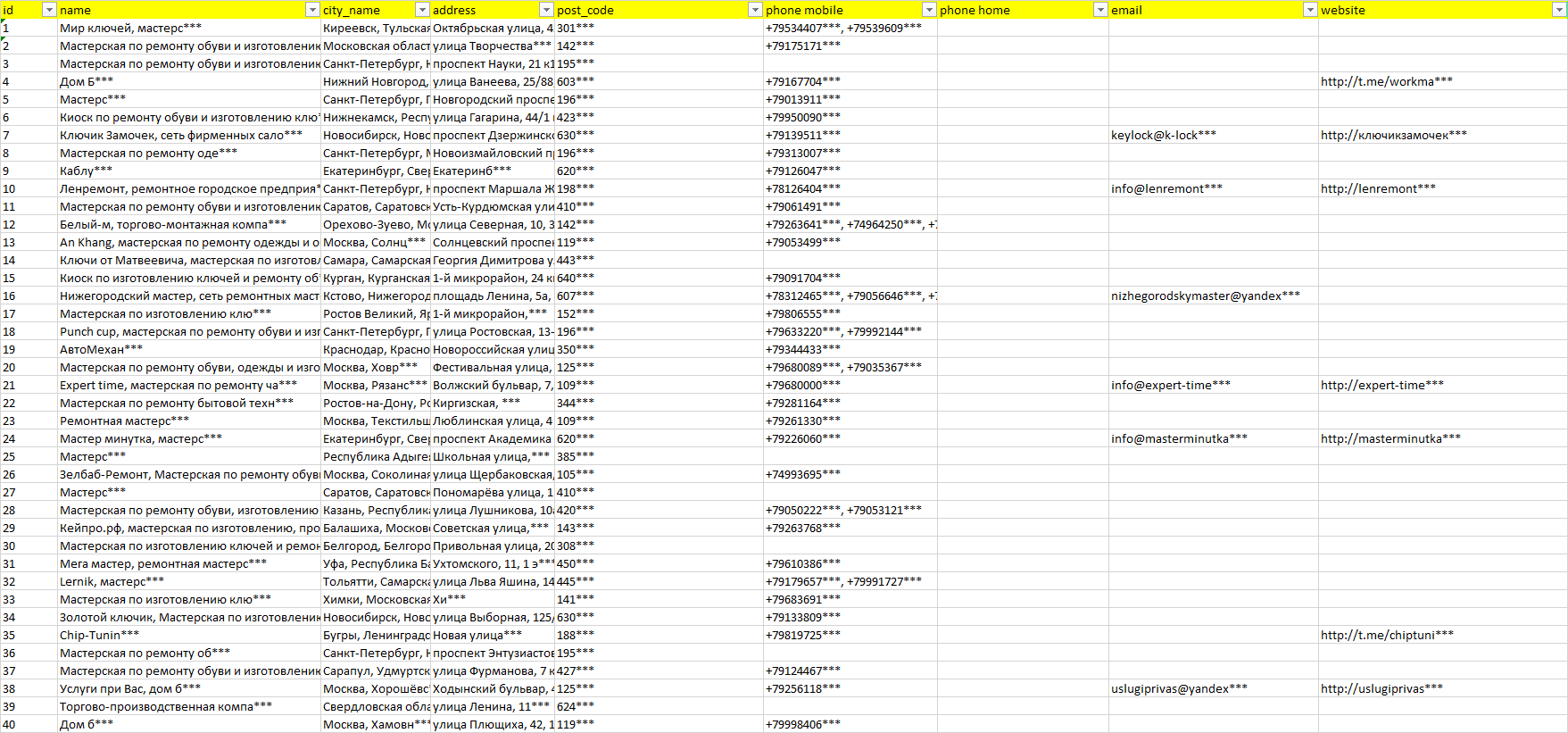 Мы автоматически собираем такие данные с различных открытых источников, обрабатываем, структурирует и упорядочиваем их, предоставляя пользователю возможность скачать результат в формате Excel. По принципу работы наш сервис аналогичен поисковым системам, таким как Google или Яндекс, но с возможностью экспорта найденной информации в удобном табличном виде.