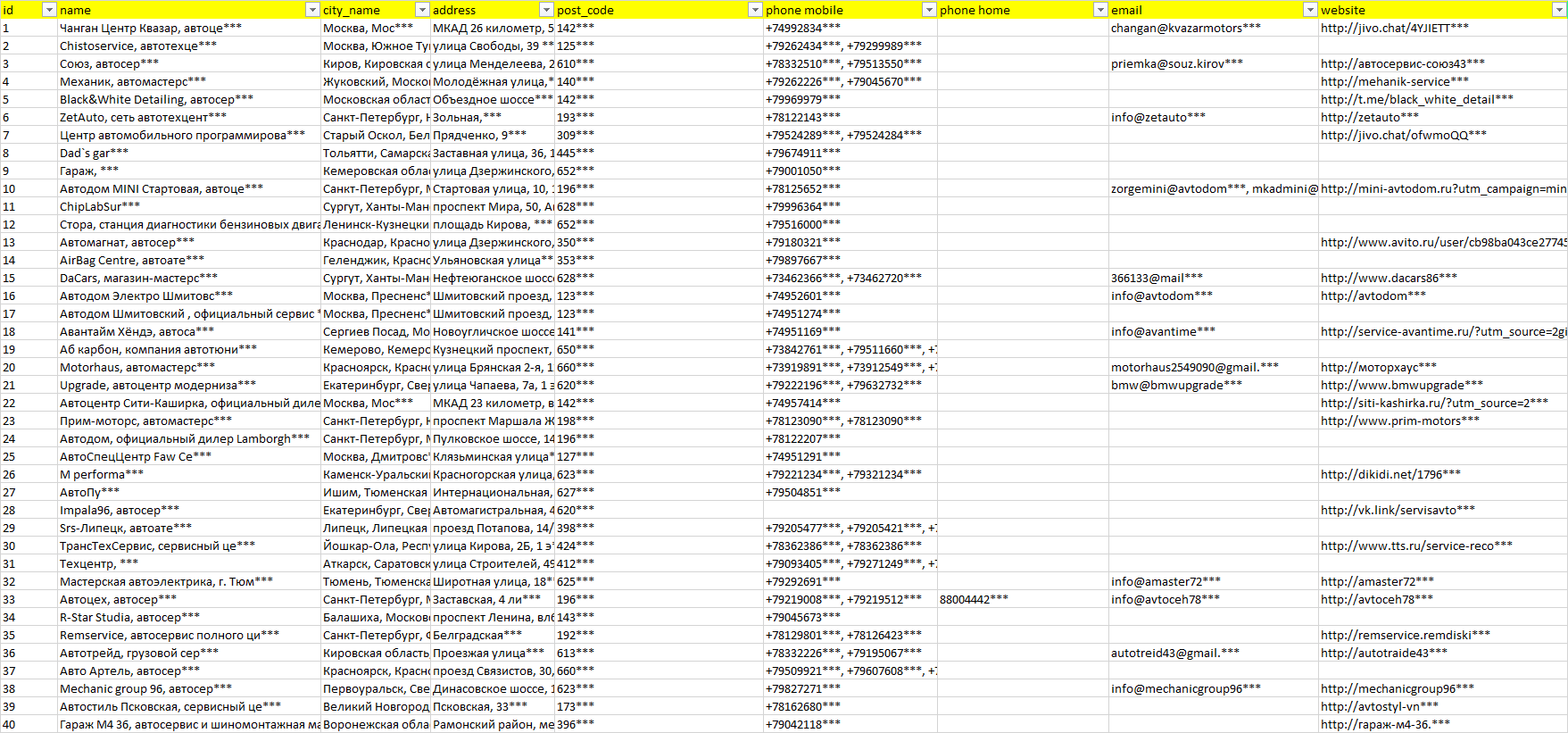 Мы автоматически собираем такие данные с различных открытых источников, обрабатываем, структурирует и упорядочиваем их, предоставляя пользователю возможность скачать результат в формате Excel. По принципу работы наш сервис аналогичен поисковым системам, таким как Google или Яндекс, но с возможностью экспорта найденной информации в удобном табличном виде.