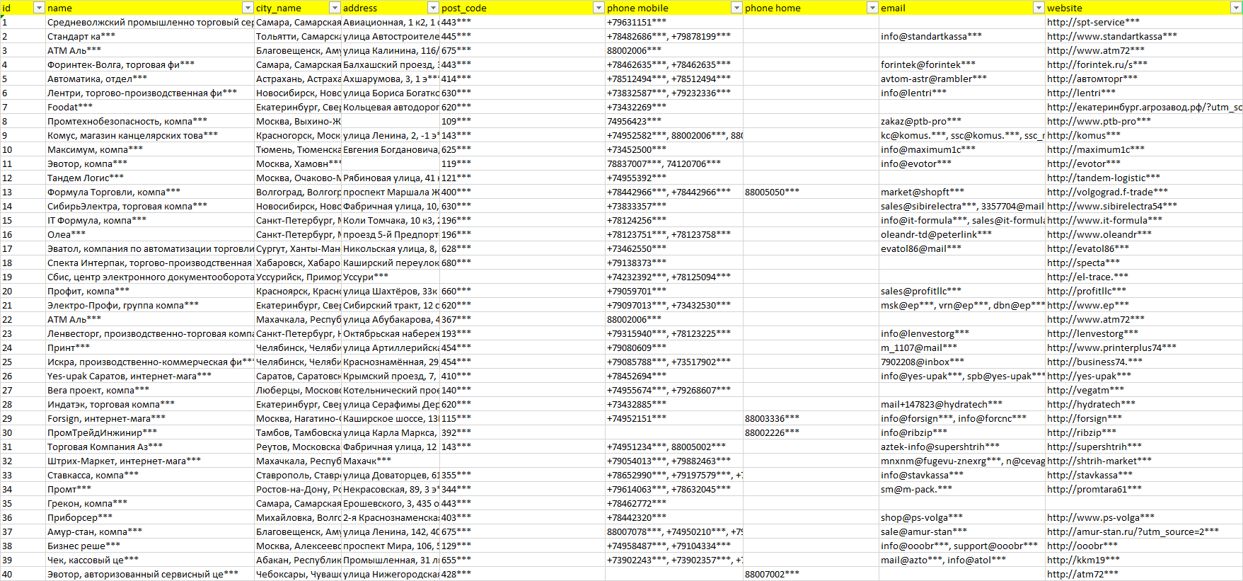 Мы автоматически собираем такие данные с различных открытых источников, обрабатываем, структурирует и упорядочиваем их, предоставляя пользователю возможность скачать результат в формате Excel. По принципу работы наш сервис аналогичен поисковым системам, таким как Google или Яндекс, но с возможностью экспорта найденной информации в удобном табличном виде.