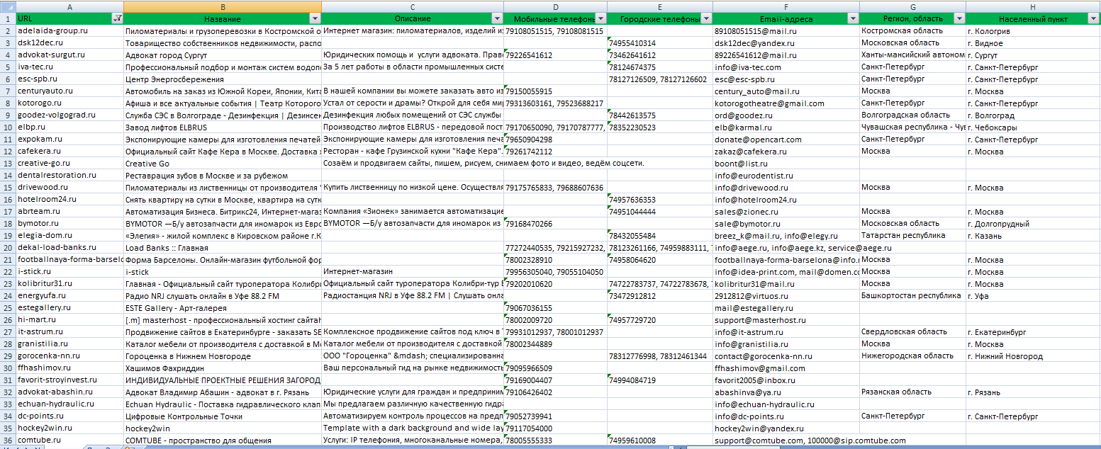 База компаний представляет собой структурированный массив данных, содержащий информацию о различных предприятиях, организациях и индивидуальных предпринимателях. Эти данные собираются, упорядочиваются и хранятся в удобной для использования форме, что делает их востребованным инструментом в бизнесе, маркетинге, аналитике и многих других сферах. В этой статье мы подробно разберем, что представляет собой база компаний, как она используются и зачем компании прибегают к их парсингу.Мы выполняем парсинг баз компаний различных направлений по всей РФ. Все базы записаны в удобном, всем известном формате Excel.Пример базы компаний