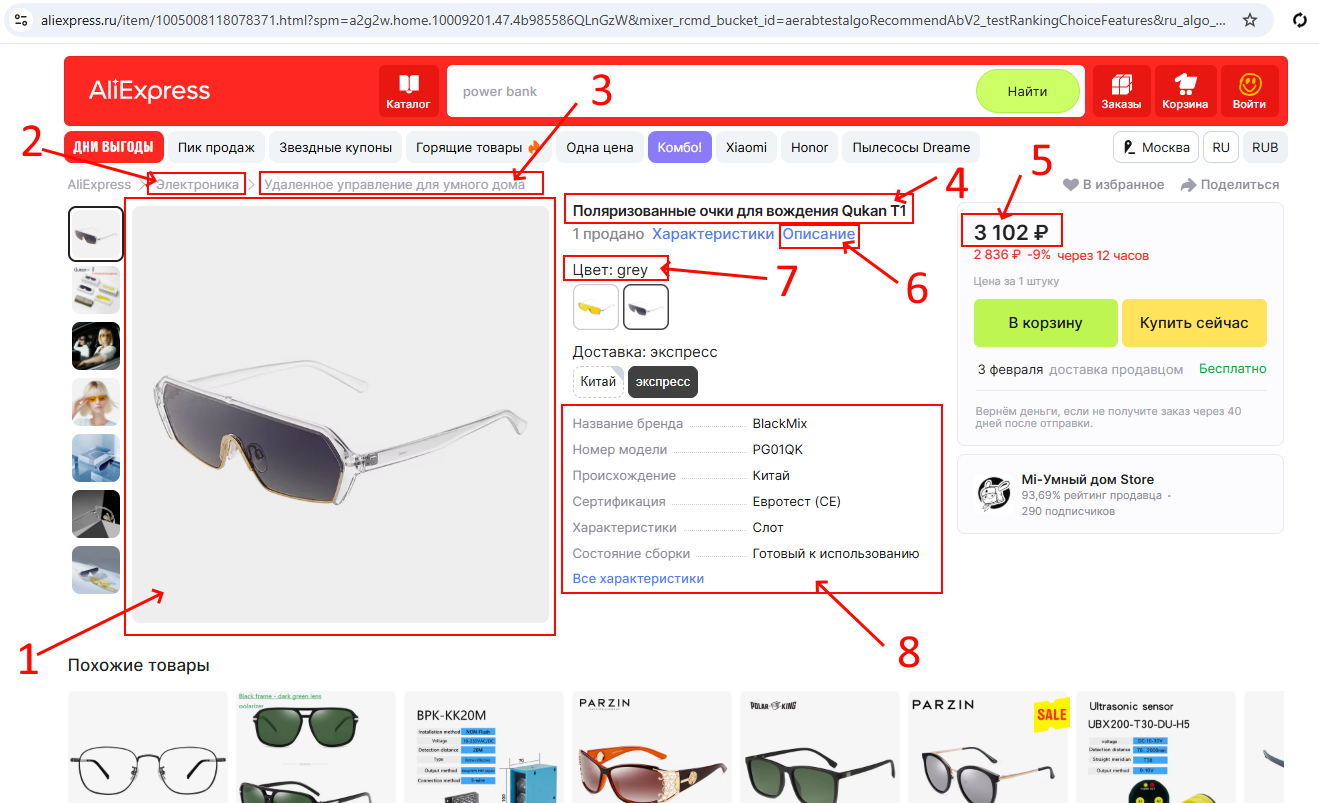 Рассмотрим пример парсинга с сайта AliExpress.