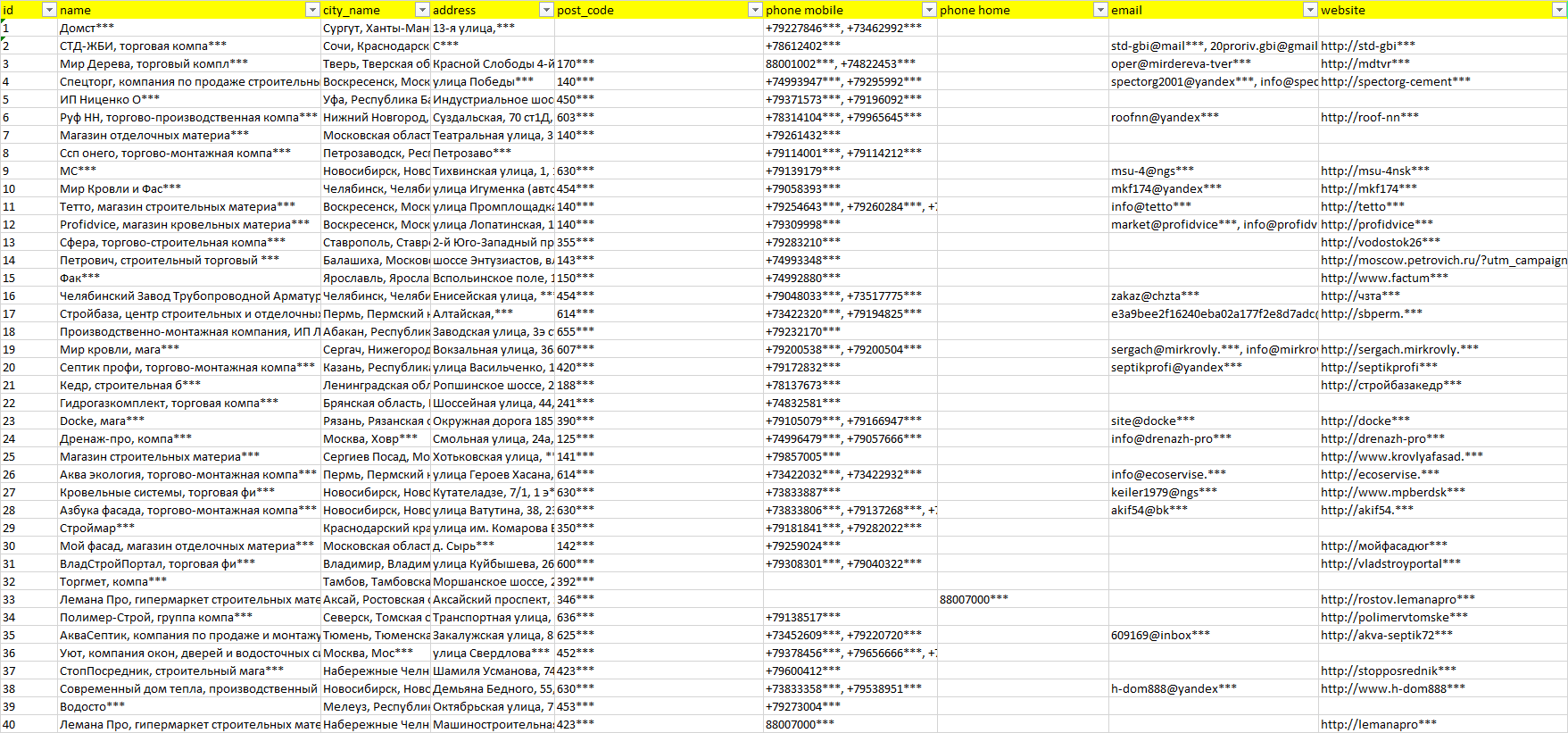 Мы автоматически собираем такие данные с различных открытых источников, обрабатываем, структурирует и упорядочиваем их, предоставляя пользователю возможность скачать результат в формате Excel. По принципу работы наш сервис аналогичен поисковым системам, таким как Google или Яндекс, но с возможностью экспорта найденной информации в удобном табличном виде.