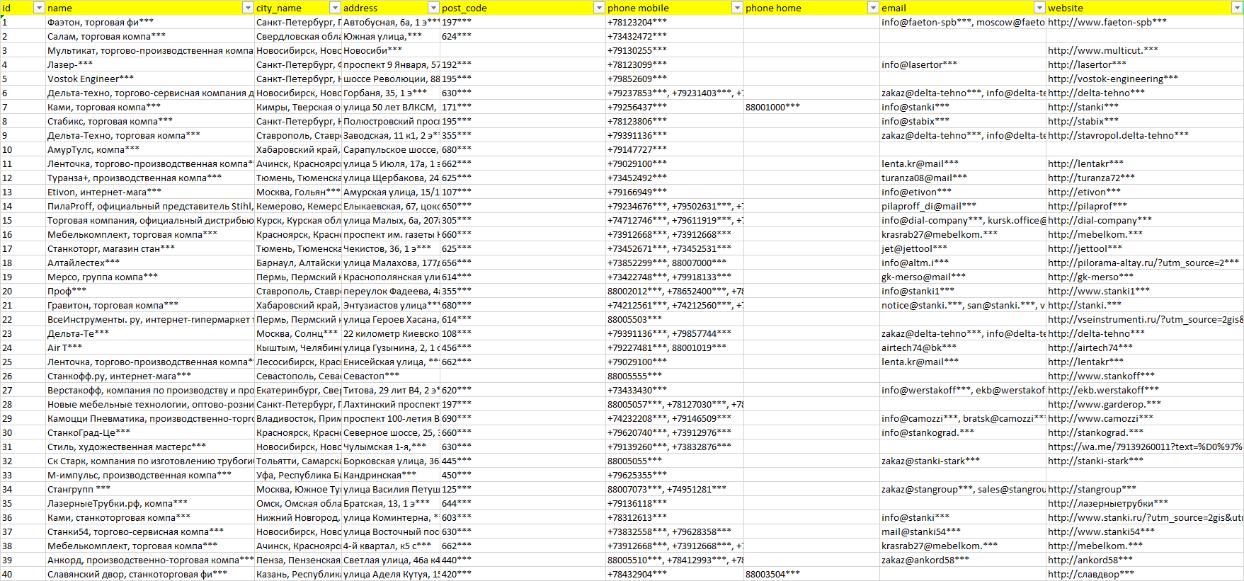 Мы автоматически собираем такие данные с различных открытых источников, обрабатываем, структурирует и упорядочиваем их, предоставляя пользователю возможность скачать результат в формате Excel. По принципу работы наш сервис аналогичен поисковым системам, таким как Google или Яндекс, но с возможностью экспорта найденной информации в удобном табличном виде.