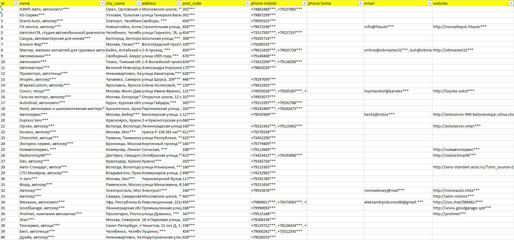 Мы автоматически собираем такие данные с различных открытых источников, обрабатываем, структурирует и упорядочиваем их, предоставляя пользователю возможность скачать результат в формате Excel. По принципу работы наш сервис аналогичен поисковым системам, таким как Google или Яндекс, но с возможностью экспорта найденной информации в удобном табличном виде.