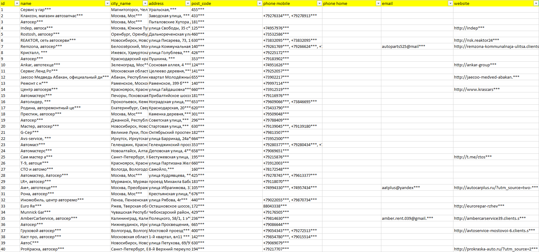 Мы автоматически собираем такие данные с различных открытых источников, обрабатываем, структурирует и упорядочиваем их, предоставляя пользователю возможность скачать результат в формате Excel. По принципу работы наш сервис аналогичен поисковым системам, таким как Google или Яндекс, но с возможностью экспорта найденной информации в удобном табличном виде.