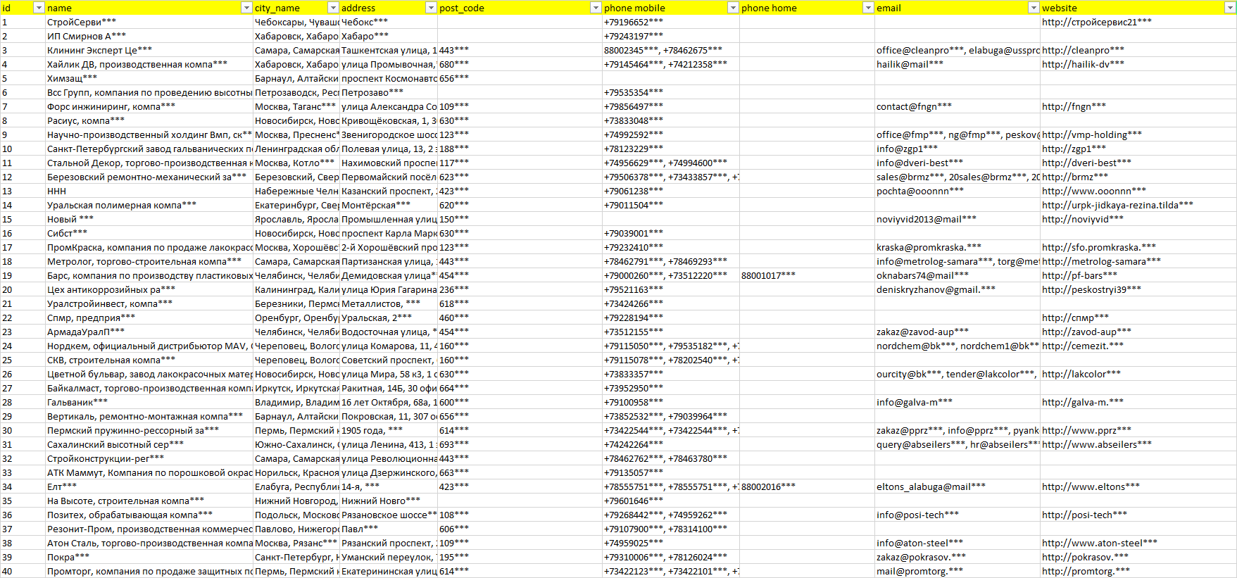 Мы автоматически собираем такие данные с различных открытых источников, обрабатываем, структурирует и упорядочиваем их, предоставляя пользователю возможность скачать результат в формате Excel. По принципу работы наш сервис аналогичен поисковым системам, таким как Google или Яндекс, но с возможностью экспорта найденной информации в удобном табличном виде.