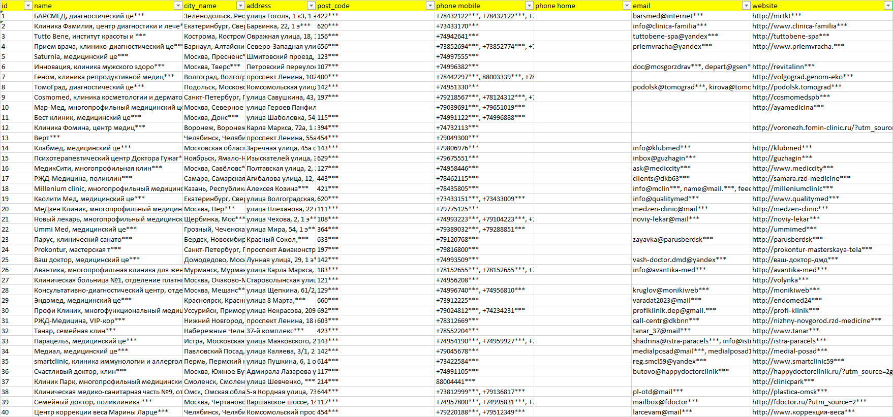 Мы автоматически собираем такие данные с различных открытых источников, обрабатываем, структурирует и упорядочиваем их, предоставляя пользователю возможность скачать результат в формате Excel. По принципу работы наш сервис аналогичен поисковым системам, таким как Google или Яндекс, но с возможностью экспорта найденной информации в удобном табличном виде.