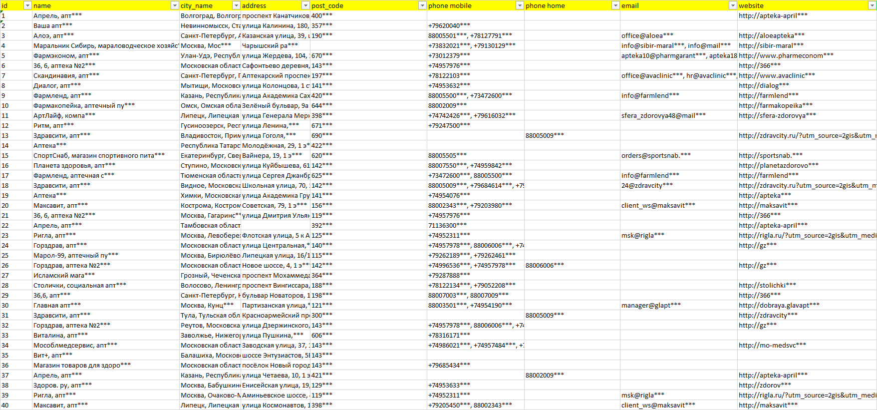 Мы автоматически собираем такие данные с различных открытых источников, обрабатываем, структурирует и упорядочиваем их, предоставляя пользователю возможность скачать результат в формате Excel. По принципу работы наш сервис аналогичен поисковым системам, таким как Google или Яндекс, но с возможностью экспорта найденной информации в удобном табличном виде.