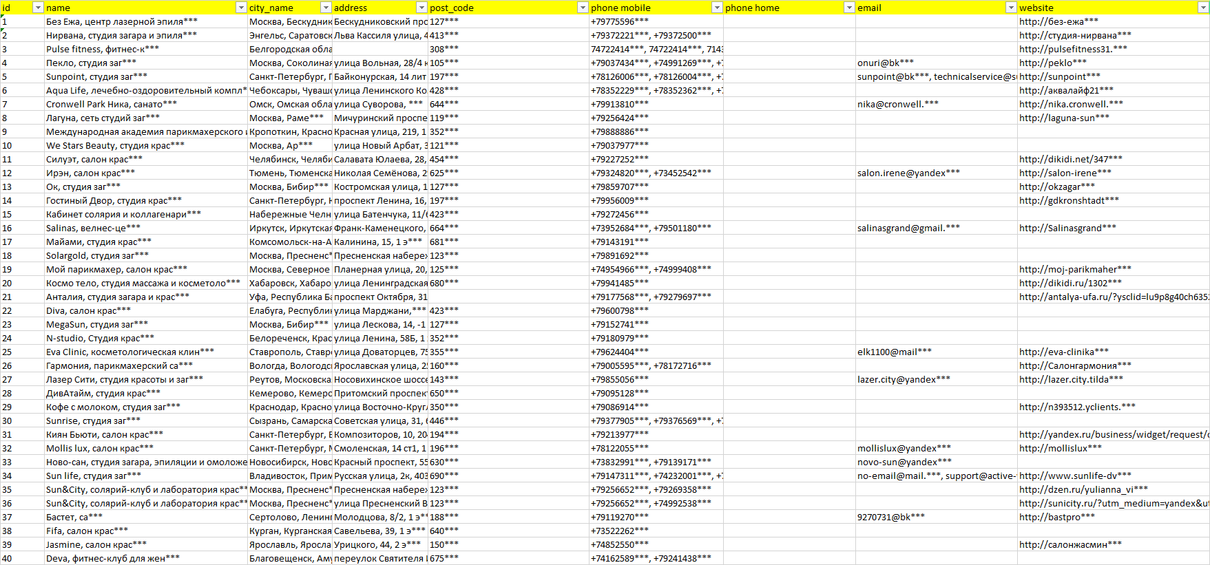 Мы автоматически собираем такие данные с различных открытых источников, обрабатываем, структурирует и упорядочиваем их, предоставляя пользователю возможность скачать результат в формате Excel. По принципу работы наш сервис аналогичен поисковым системам, таким как Google или Яндекс, но с возможностью экспорта найденной информации в удобном табличном виде.