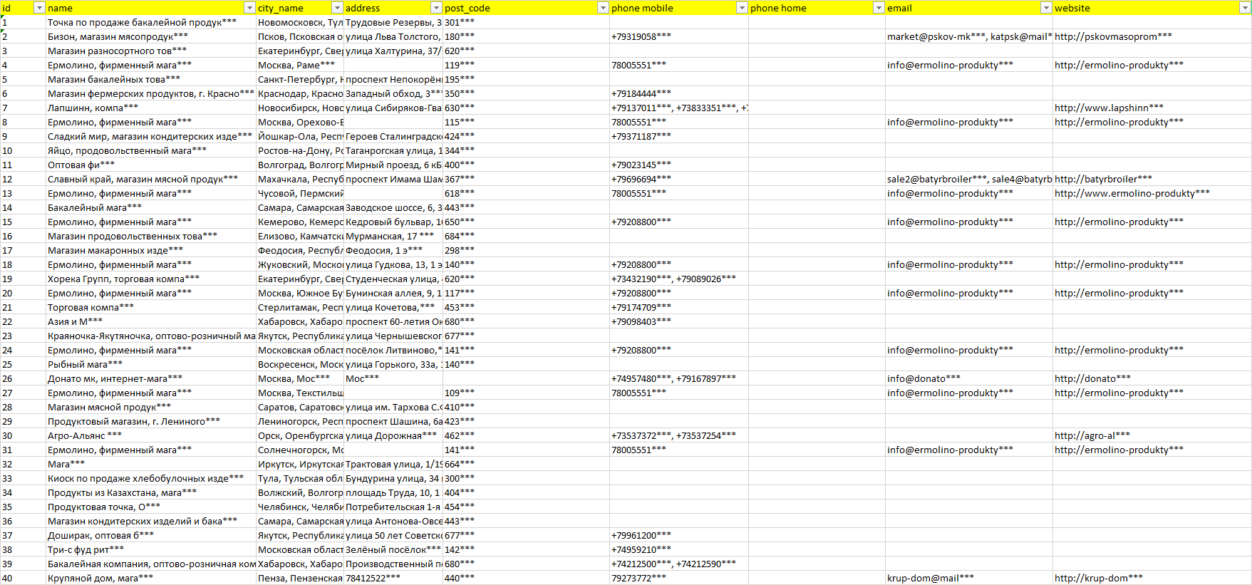 Мы автоматически собираем такие данные с различных открытых источников, обрабатываем, структурирует и упорядочиваем их, предоставляя пользователю возможность скачать результат в формате Excel. По принципу работы наш сервис аналогичен поисковым системам, таким как Google или Яндекс, но с возможностью экспорта найденной информации в удобном табличном виде.