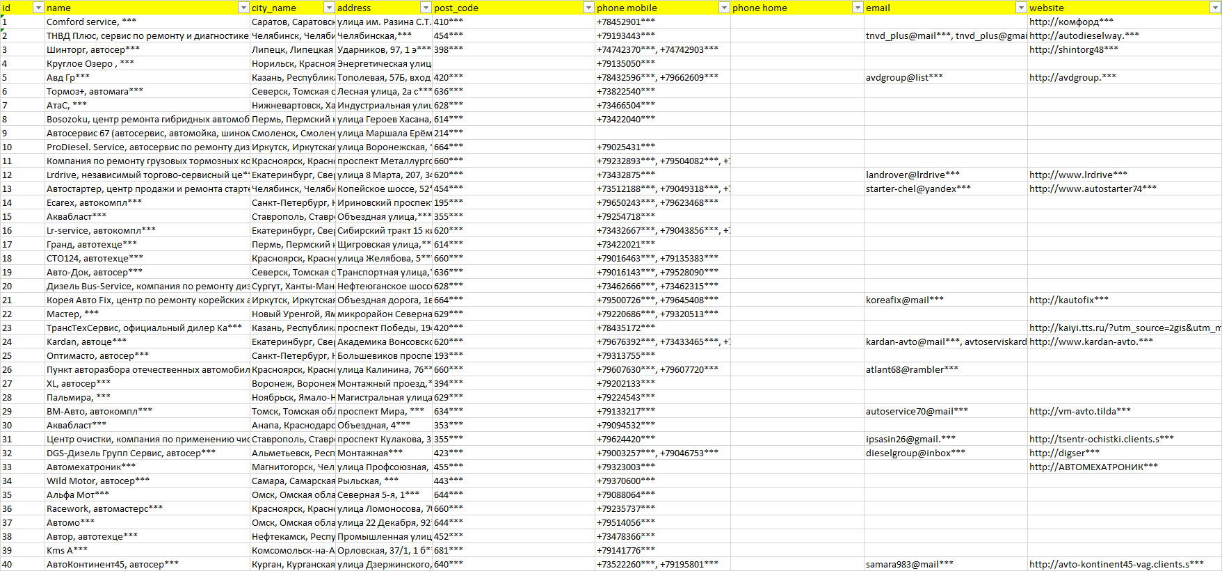 Мы автоматически собираем такие данные с различных открытых источников, обрабатываем, структурирует и упорядочиваем их, предоставляя пользователю возможность скачать результат в формате Excel. По принципу работы наш сервис аналогичен поисковым системам, таким как Google или Яндекс, но с возможностью экспорта найденной информации в удобном табличном виде.