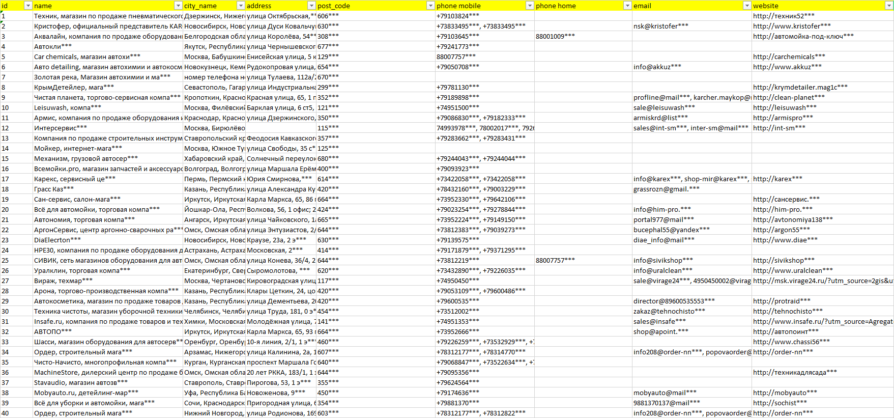 Мы автоматически собираем такие данные с различных открытых источников, обрабатываем, структурирует и упорядочиваем их, предоставляя пользователю возможность скачать результат в формате Excel. По принципу работы наш сервис аналогичен поисковым системам, таким как Google или Яндекс, но с возможностью экспорта найденной информации в удобном табличном виде.