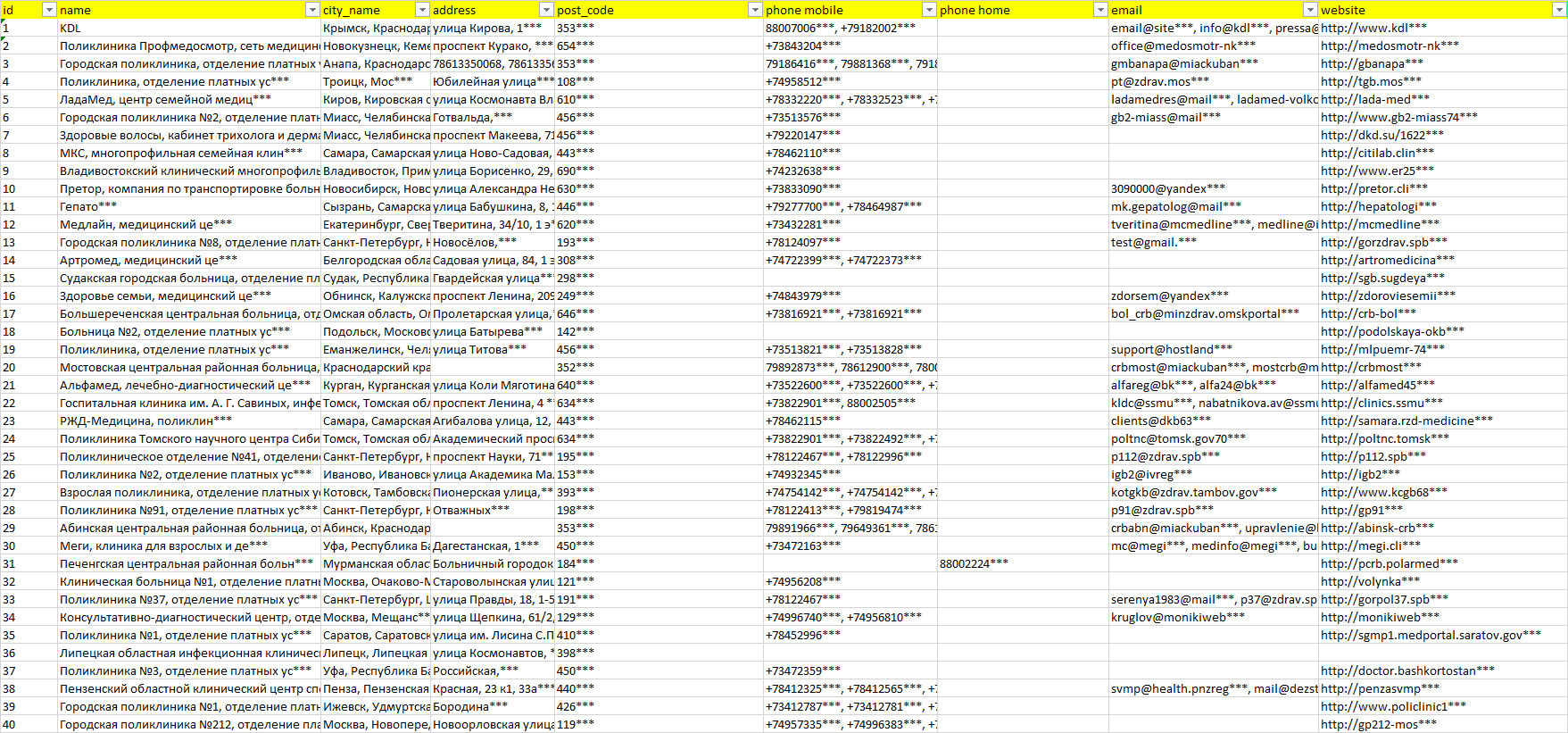 База организаций инфекционист, вся Россия в формате Excel с эл. почтами, телефонами, сайтами, ссылками на соц сети, координатами и другой информацией. Скачайте демо версию, чтобы ознакомиться с данными.