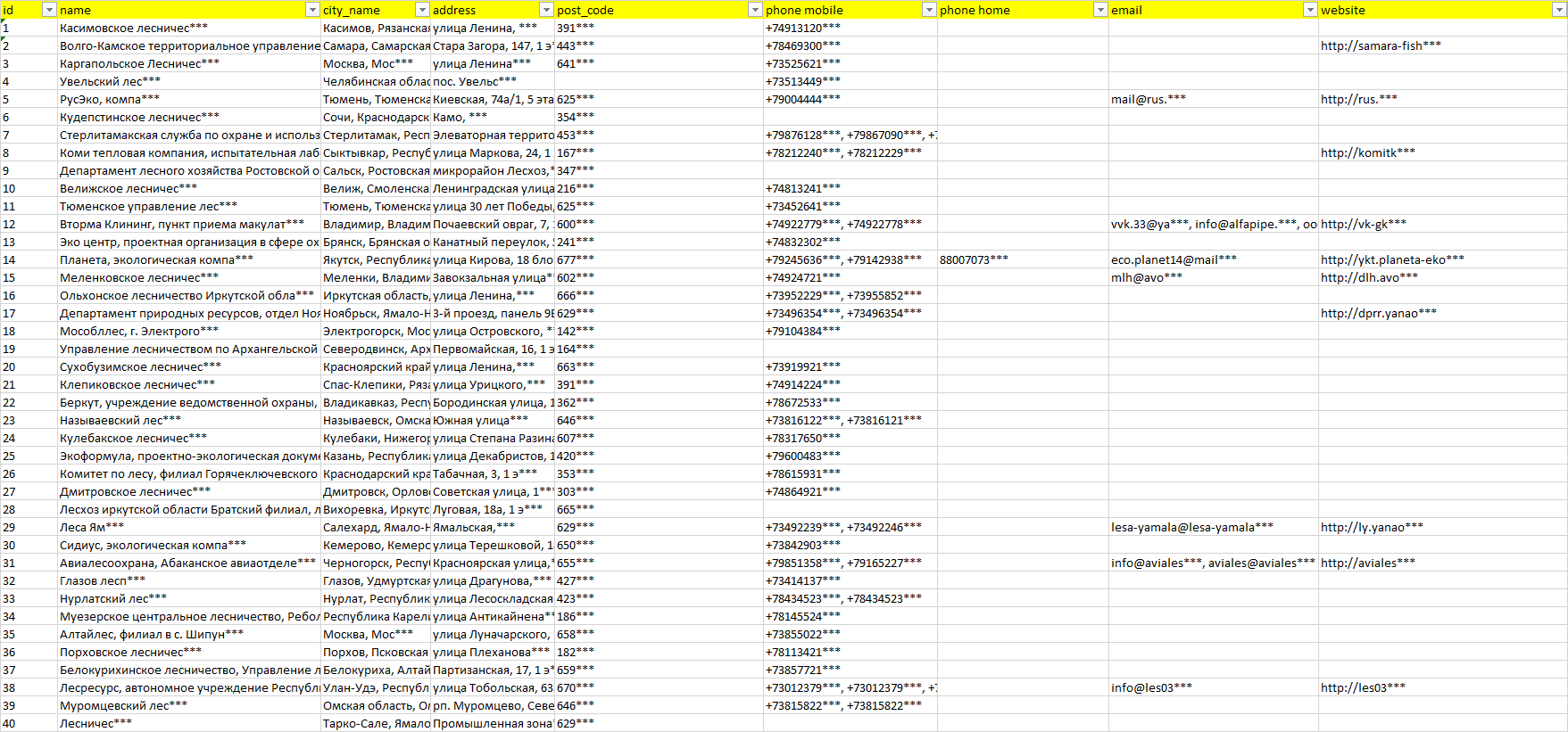База организаций организации природоохраны, вся Россия в формате Excel с эл. почтами, телефонами, сайтами, ссылками на соц сети, координатами и другой информацией. Скачайте демо версию, чтобы ознакомиться с данными.