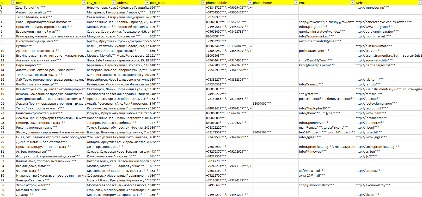 Мы автоматически собираем такие данные с различных открытых источников, обрабатываем, структурирует и упорядочиваем их, предоставляя пользователю возможность скачать результат в формате Excel. По принципу работы наш сервис аналогичен поисковым системам, таким как Google или Яндекс, но с возможностью экспорта найденной информации в удобном табличном виде.