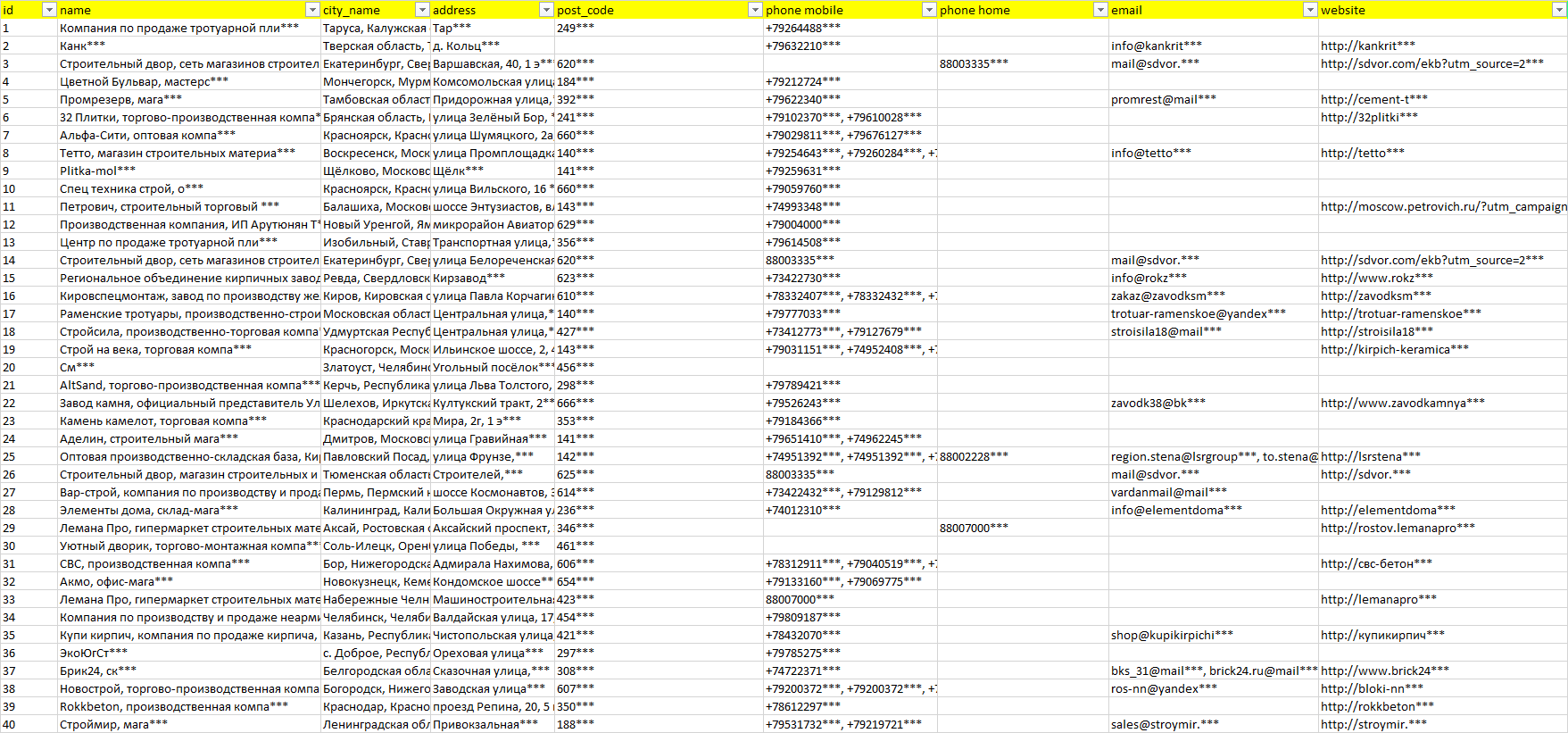 Мы автоматически собираем такие данные с различных открытых источников, обрабатываем, структурирует и упорядочиваем их, предоставляя пользователю возможность скачать результат в формате Excel. По принципу работы наш сервис аналогичен поисковым системам, таким как Google или Яндекс, но с возможностью экспорта найденной информации в удобном табличном виде.