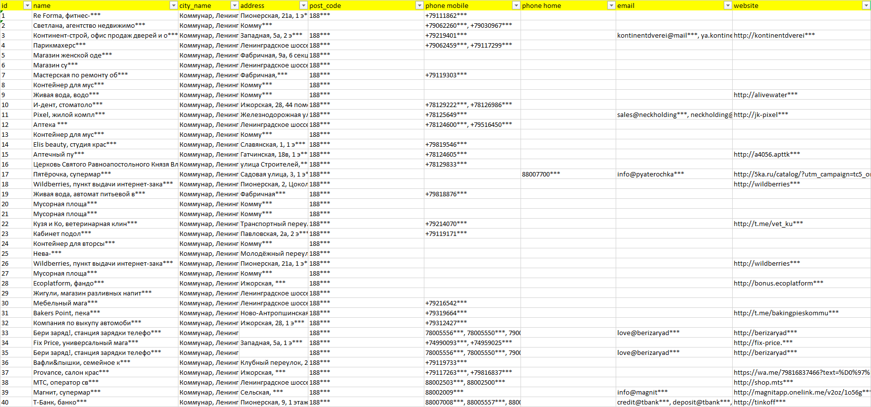 Мы автоматически собираем такие данные с различных открытых источников, обрабатываем, структурирует и упорядочиваем их, предоставляя пользователю возможность скачать результат в формате Excel. По принципу работы наш сервис аналогичен поисковым системам, таким как Google или Яндекс, но с возможностью экспорта найденной информации в удобном табличном виде.