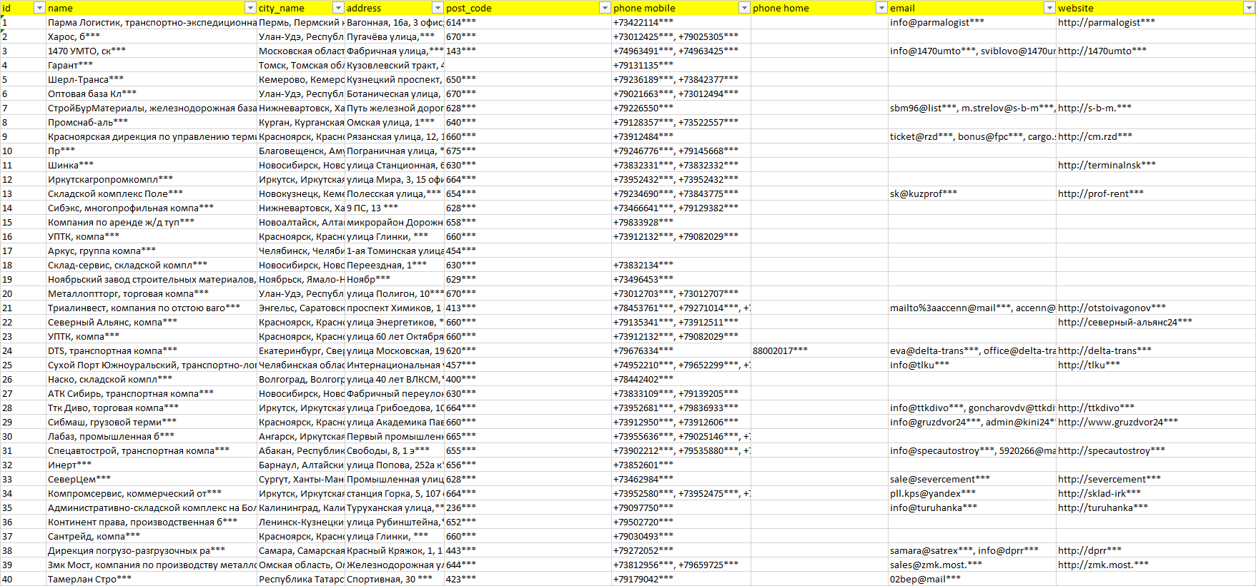 Мы автоматически собираем такие данные с различных открытых источников, обрабатываем, структурирует и упорядочиваем их, предоставляя пользователю возможность скачать результат в формате Excel. По принципу работы наш сервис аналогичен поисковым системам, таким как Google или Яндекс, но с возможностью экспорта найденной информации в удобном табличном виде.