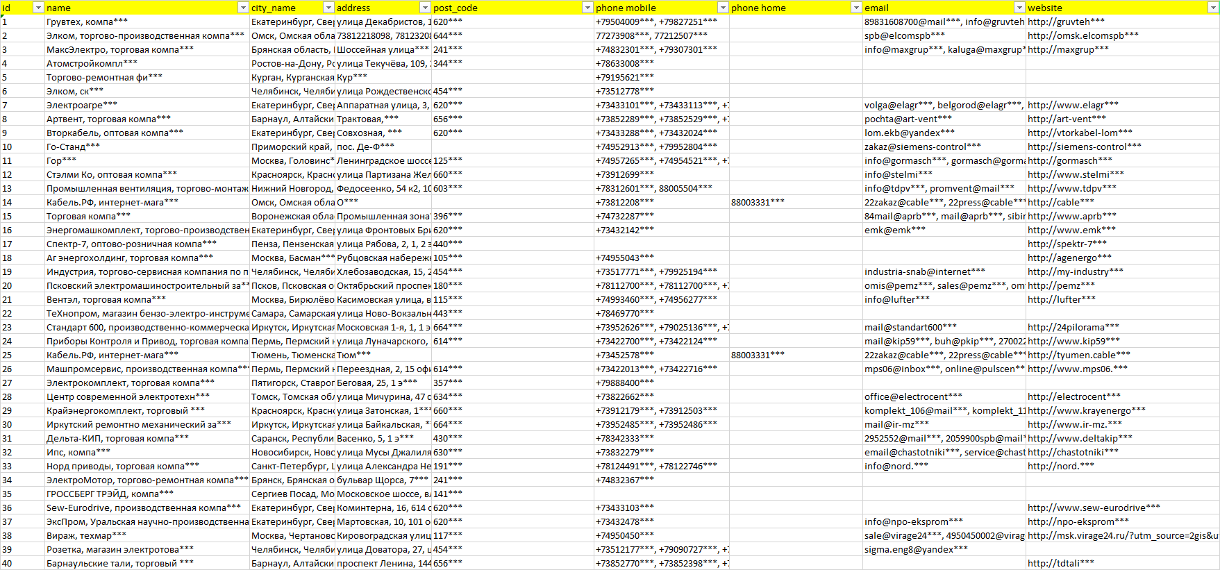 Мы автоматически собираем такие данные с различных открытых источников, обрабатываем, структурирует и упорядочиваем их, предоставляя пользователю возможность скачать результат в формате Excel. По принципу работы наш сервис аналогичен поисковым системам, таким как Google или Яндекс, но с возможностью экспорта найденной информации в удобном табличном виде.