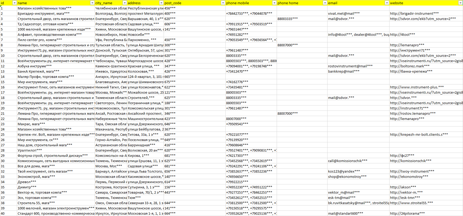 Мы автоматически собираем такие данные с различных открытых источников, обрабатываем, структурирует и упорядочиваем их, предоставляя пользователю возможность скачать результат в формате Excel. По принципу работы наш сервис аналогичен поисковым системам, таким как Google или Яндекс, но с возможностью экспорта найденной информации в удобном табличном виде.