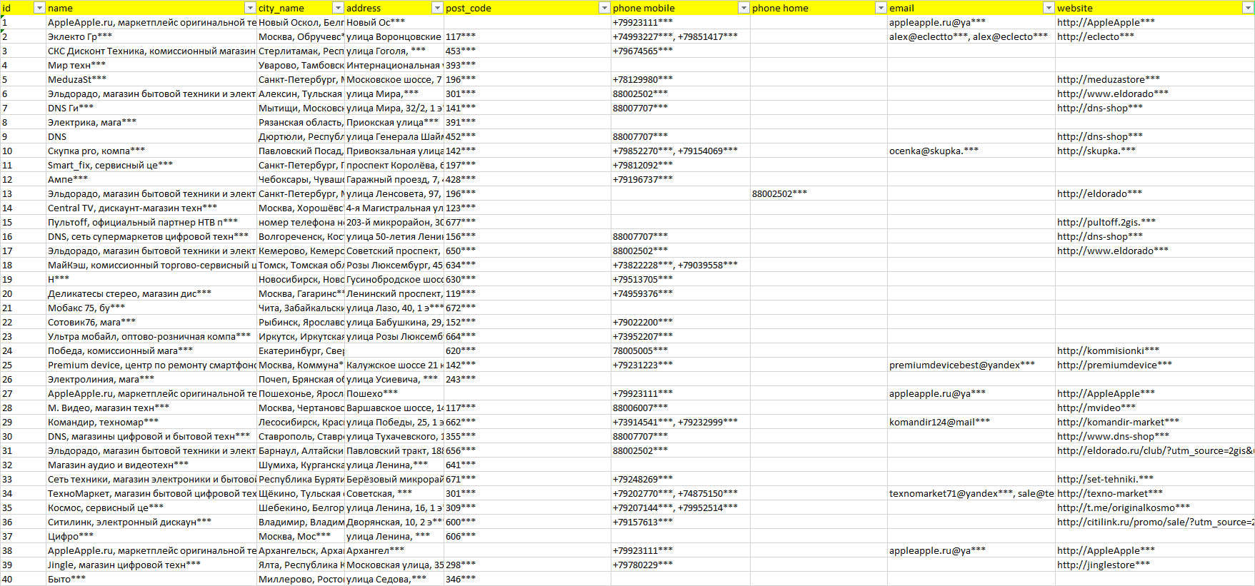 Мы автоматически собираем такие данные с различных открытых источников, обрабатываем, структурирует и упорядочиваем их, предоставляя пользователю возможность скачать результат в формате Excel. По принципу работы наш сервис аналогичен поисковым системам, таким как Google или Яндекс, но с возможностью экспорта найденной информации в удобном табличном виде.
