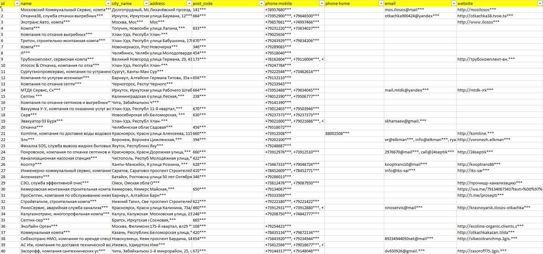 Мы автоматически собираем такие данные с различных открытых источников, обрабатываем, структурирует и упорядочиваем их, предоставляя пользователю возможность скачать результат в формате Excel. По принципу работы наш сервис аналогичен поисковым системам, таким как Google или Яндекс, но с возможностью экспорта найденной информации в удобном табличном виде.