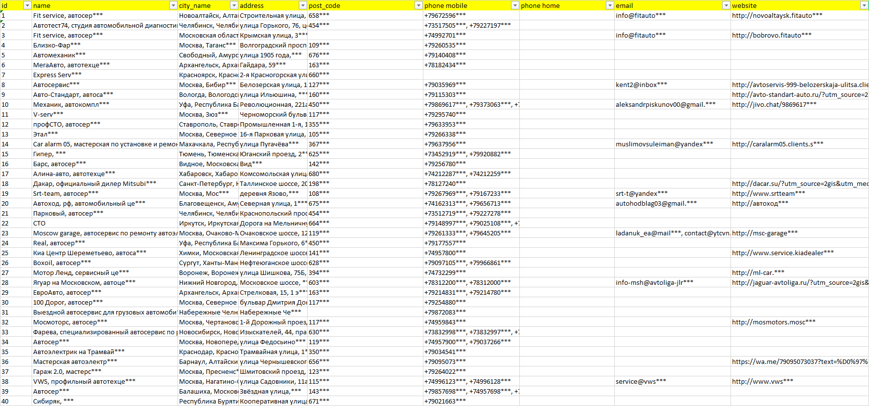 Мы автоматически собираем такие данные с различных открытых источников, обрабатываем, структурирует и упорядочиваем их, предоставляя пользователю возможность скачать результат в формате Excel. По принципу работы наш сервис аналогичен поисковым системам, таким как Google или Яндекс, но с возможностью экспорта найденной информации в удобном табличном виде.