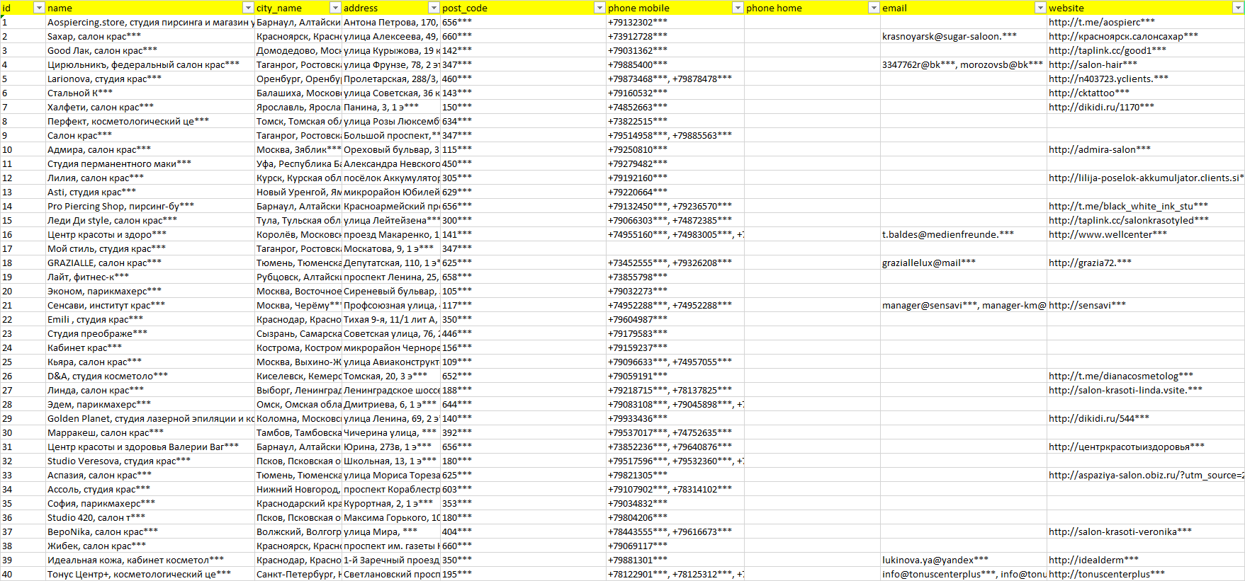 Мы автоматически собираем такие данные с различных открытых источников, обрабатываем, структурирует и упорядочиваем их, предоставляя пользователю возможность скачать результат в формате Excel. По принципу работы наш сервис аналогичен поисковым системам, таким как Google или Яндекс, но с возможностью экспорта найденной информации в удобном табличном виде.