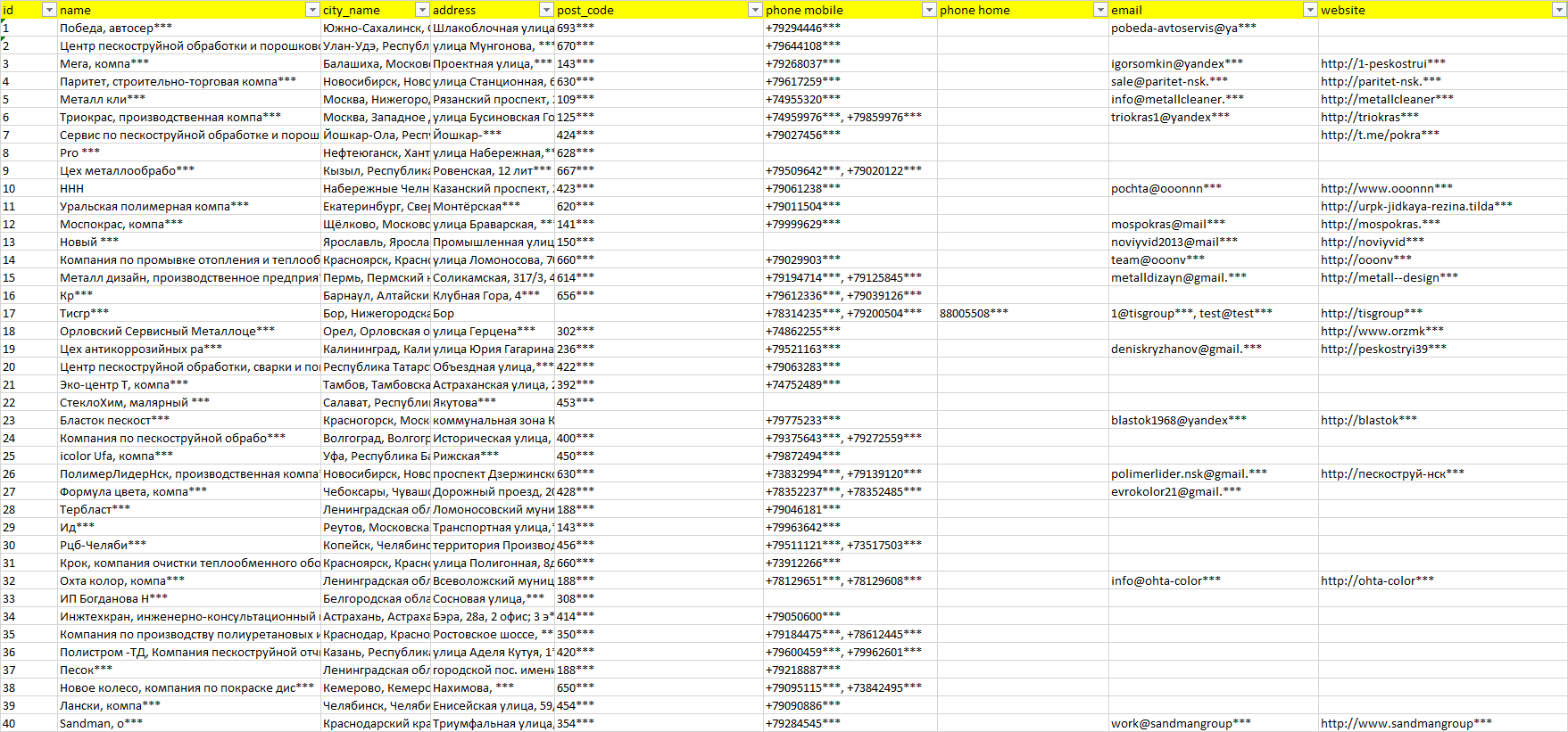 Мы автоматически собираем такие данные с различных открытых источников, обрабатываем, структурирует и упорядочиваем их, предоставляя пользователю возможность скачать результат в формате Excel. По принципу работы наш сервис аналогичен поисковым системам, таким как Google или Яндекс, но с возможностью экспорта найденной информации в удобном табличном виде.