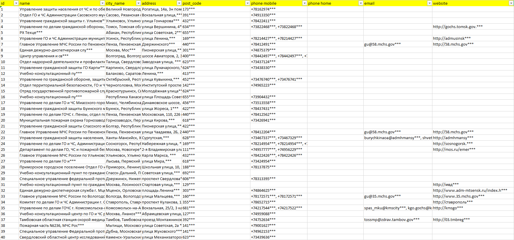 База компаний управление го и чс, вся РФ в формате Excel с эл. почтами, телефонами, сайтами, ссылками на соц сети, координатами и другой информацией. Скачайте демо версию, чтобы ознакомиться с данными.