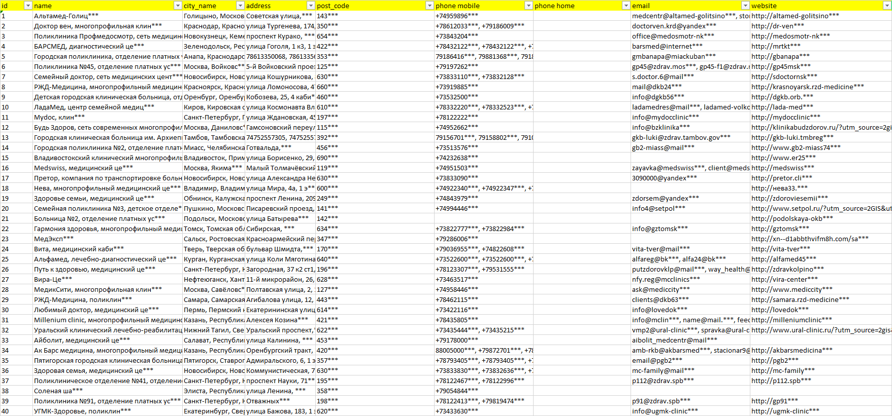 Мы автоматически собираем такие данные с различных открытых источников, обрабатываем, структурирует и упорядочиваем их, предоставляя пользователю возможность скачать результат в формате Excel. По принципу работы наш сервис аналогичен поисковым системам, таким как Google или Яндекс, но с возможностью экспорта найденной информации в удобном табличном виде.